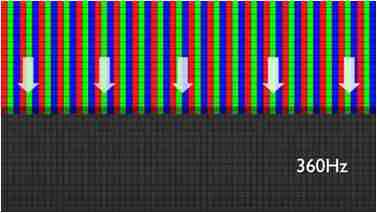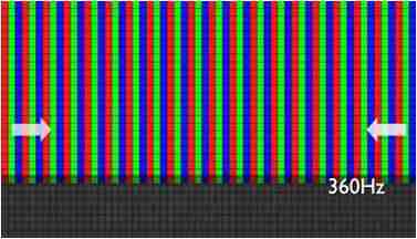 传统液晶驱动是从左到右单向进行,,,在画面更新速度愈来越愈快的情况下,,,,位于驱动线路末端的右下角区域,,画素的闸极来不及在短时间内获得足够电压,,无法显示出正确的颜色资讯。。。 |