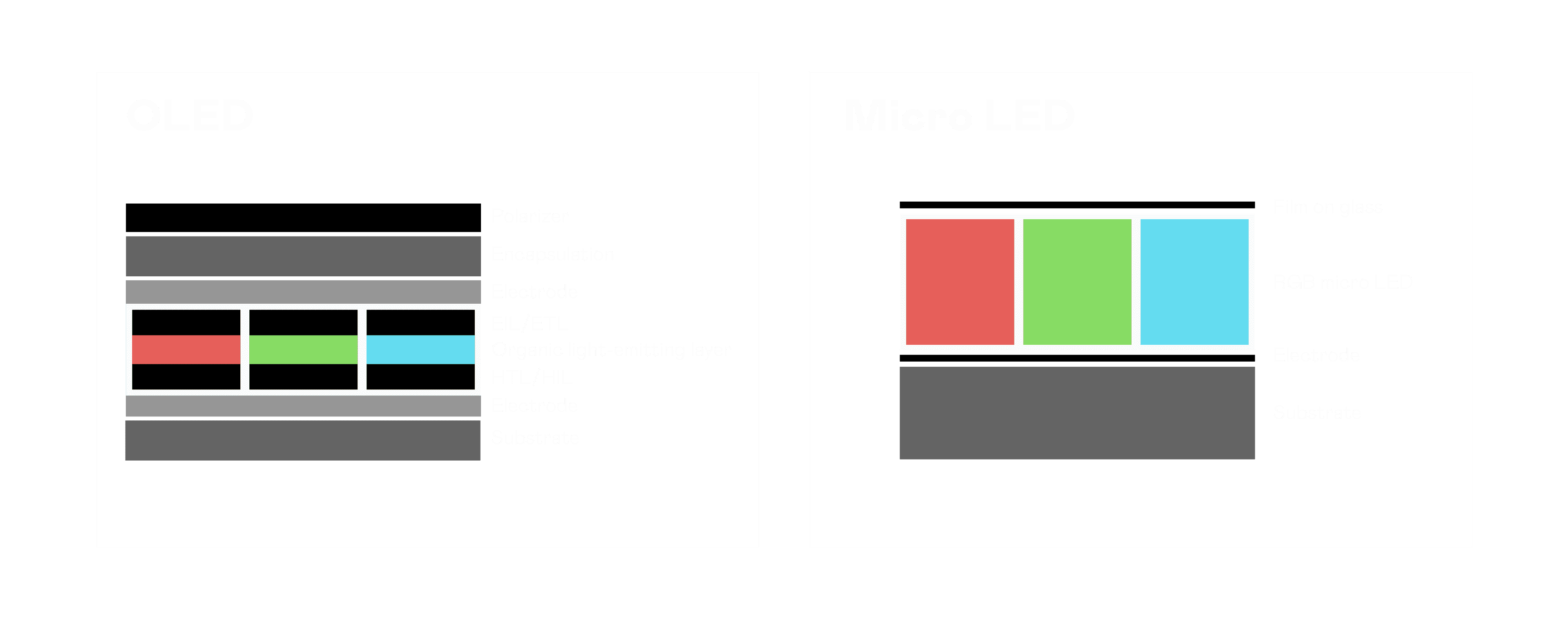 以 LED 做为显示画素,,,,可让 LED 的发光效率发挥到极致,,,,从而让显示器具备优异的亮度表现,,,不论是在户外或室内,,,均具备出众的显示效果。。。同时,,,,与使用有机材料的 OLED 相比,,,LED 具备更稳定、、、寿命更长的特性,,不仅不会有画面烙印问题,,而且更不容易出现故障、、坏点。。。。